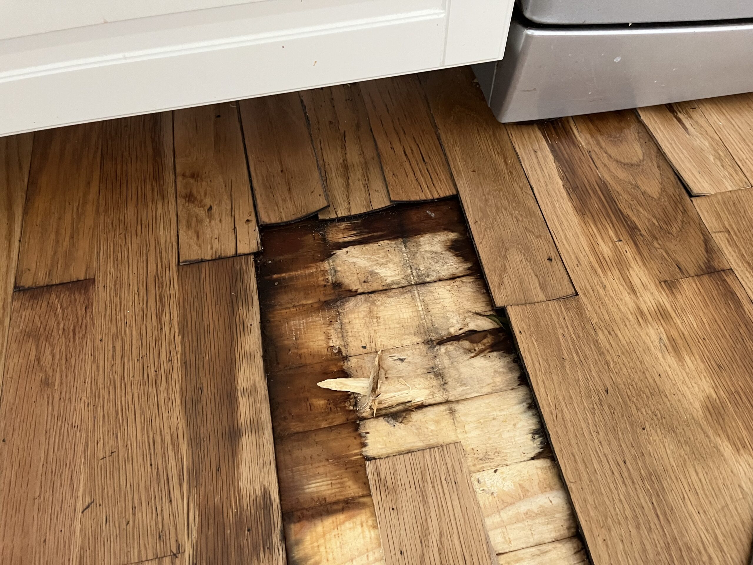 Teine levinuim kahju on põrandakahju. Vesi tuleb, vesi läheb, aga parkett pundub ja see tuleb ikka ära vahetada. Meie meistrid teevad sellised tööd mängleva kergusega ära.